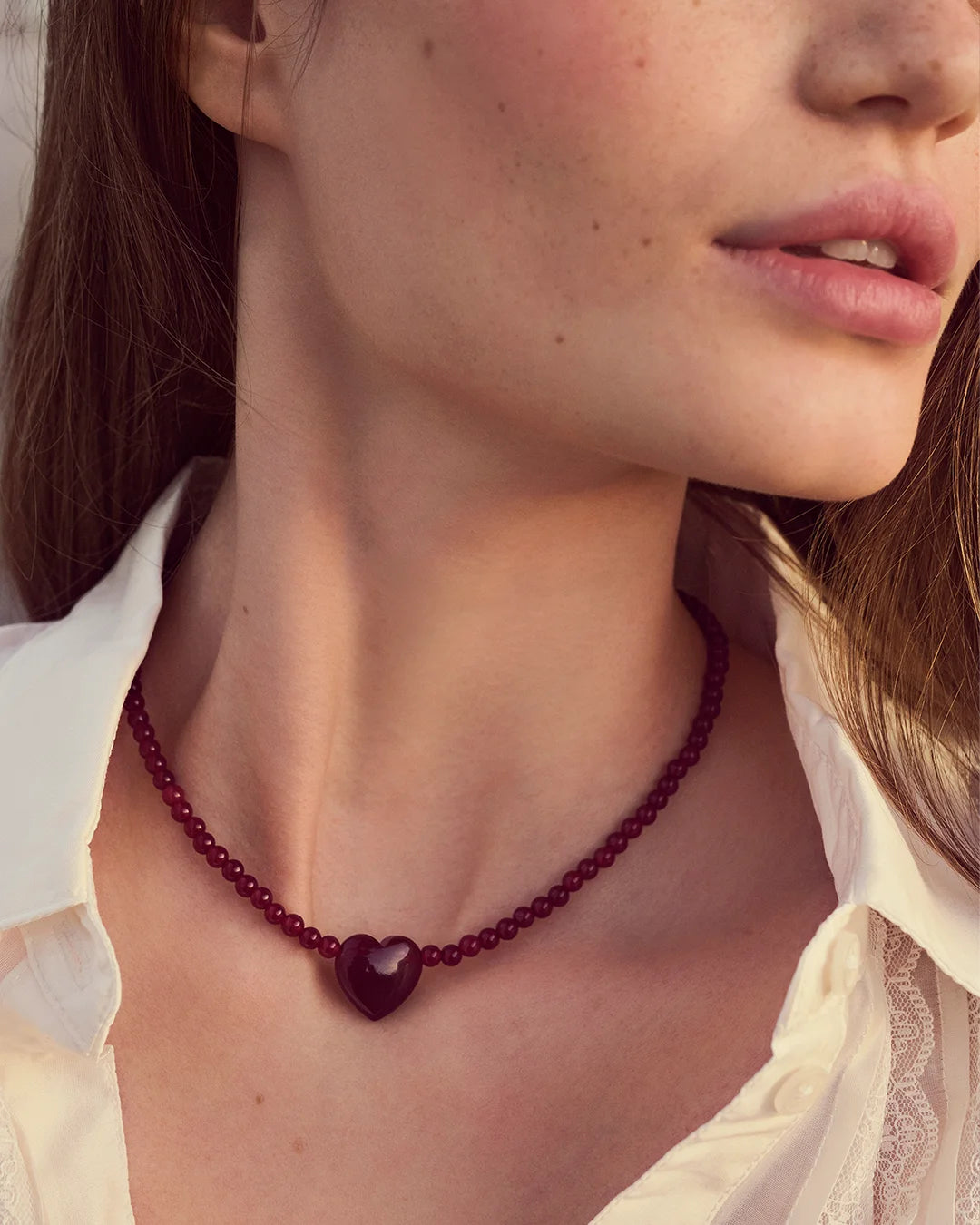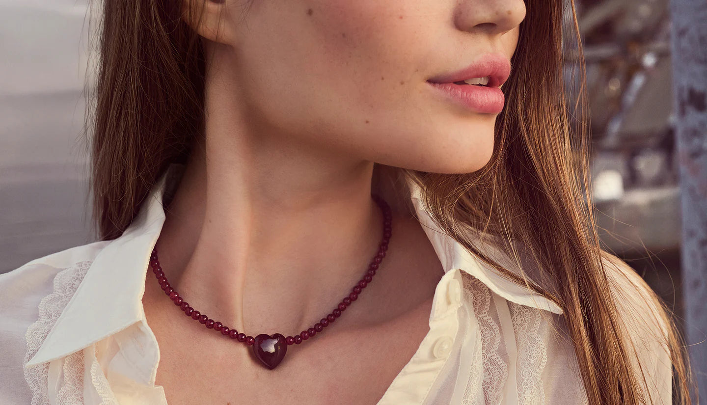 Maanestens Valentinsdagskolleksjon setter hjertet i sentrum og feirer kjærligheten i alle dens former. Med delikate silhuetter, hjerteanheng og rød jade – en stein som symboliserer styrke, energi og kjærlighet – kombinerer kolleksjonen romantikk, symbolikk og håndverk. Smykkene og smykkeskrinet i begrenset opplag er skapt for både stor kjærlighet, litt flørting og selvkjærlighet.