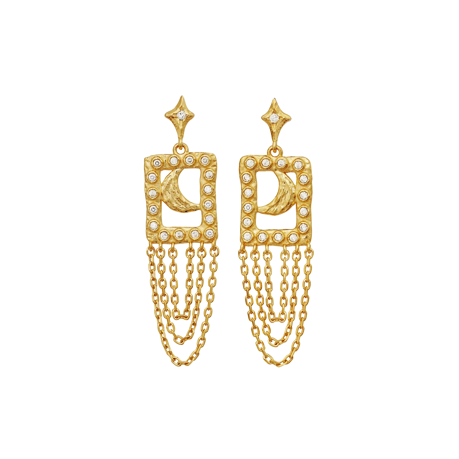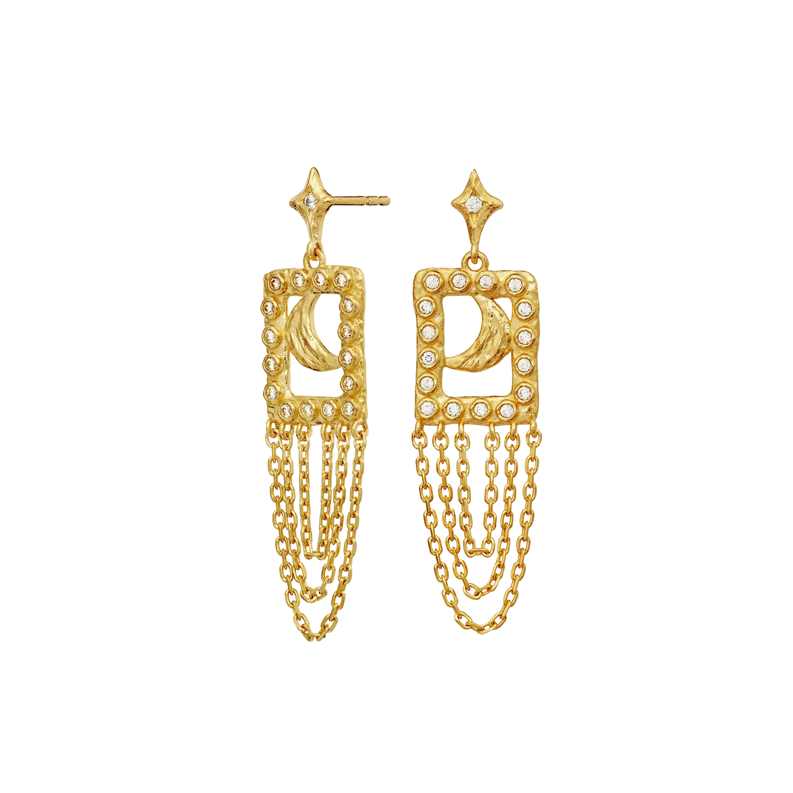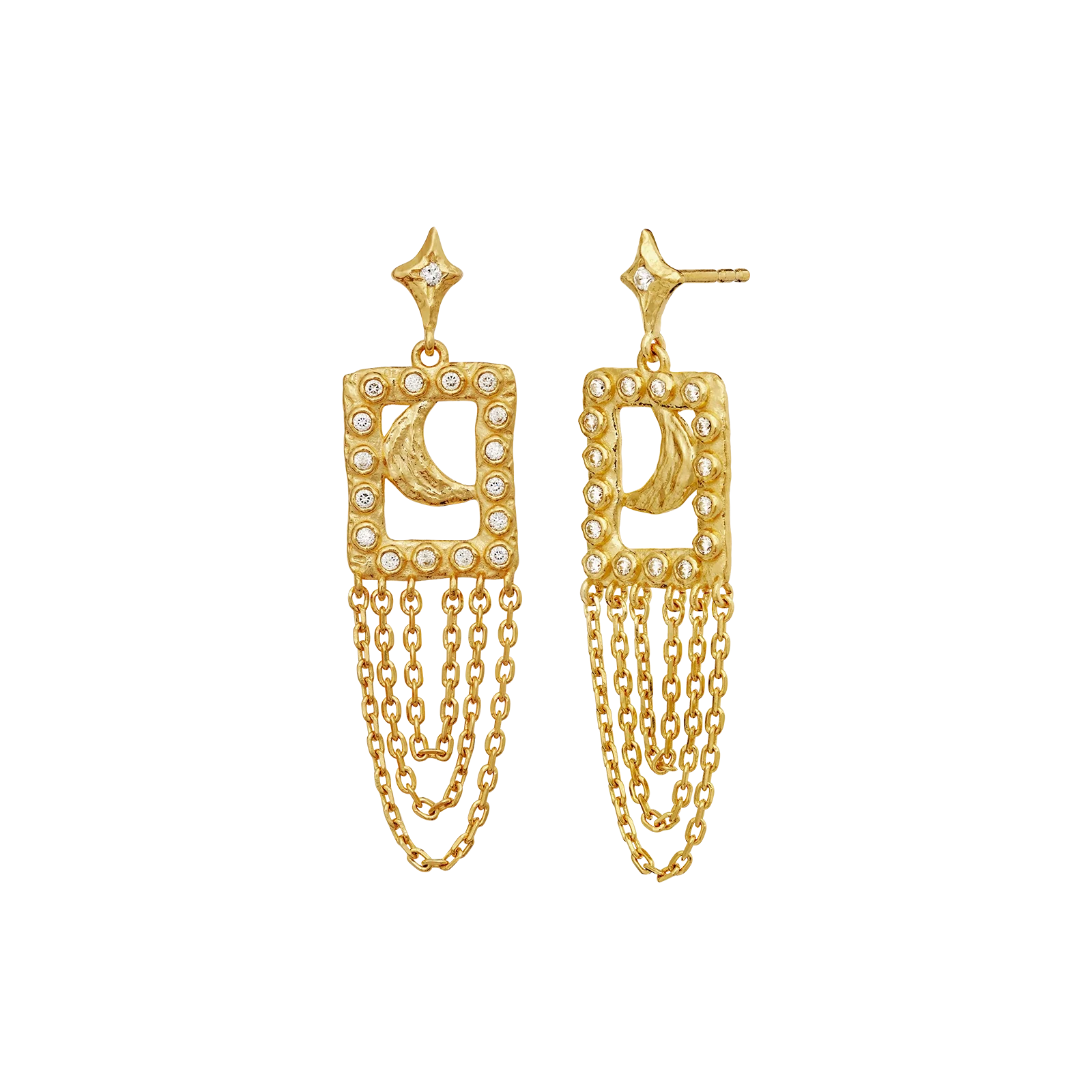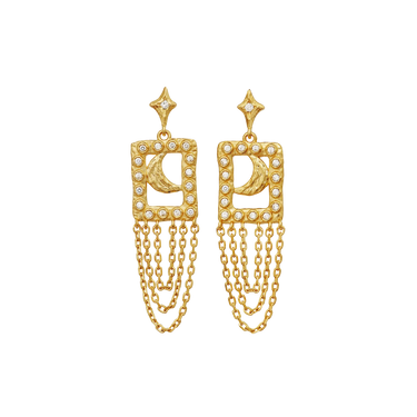 Våre Barbra-øreringer utstråler en umiskjennelig feminin styrke og karisma. Med en forførende halvmåne omgitt av glitrende zirkoner, reflekterer de energien som bare showets stjerne besitter.