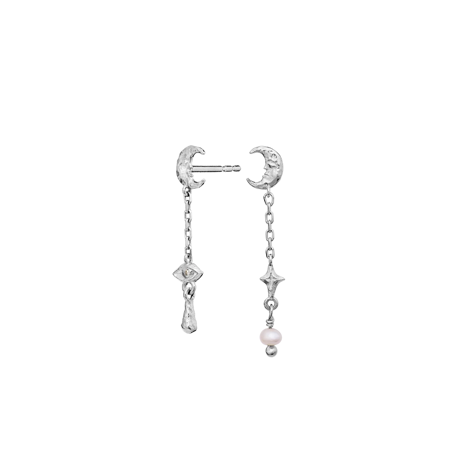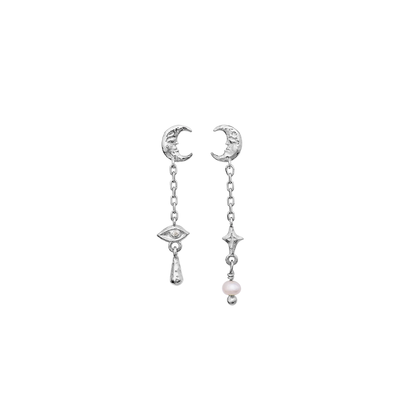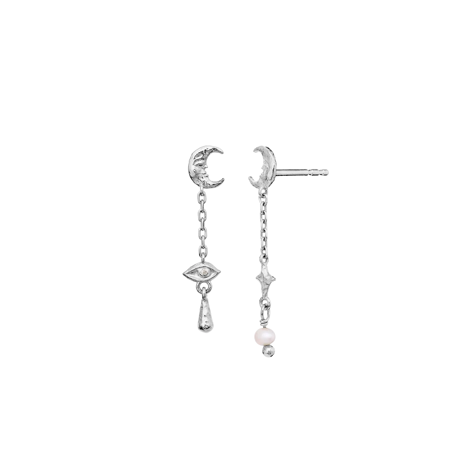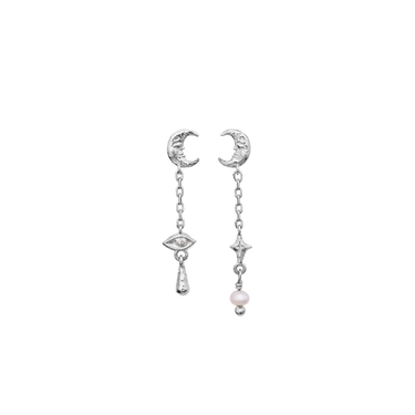 Opplev nattens magi med våre Beatrice-øreringer. Med fantasifulle halvmåner, observatørens øye og en ferskvannsperle, utstråler de scenens fortryllende eleganse.