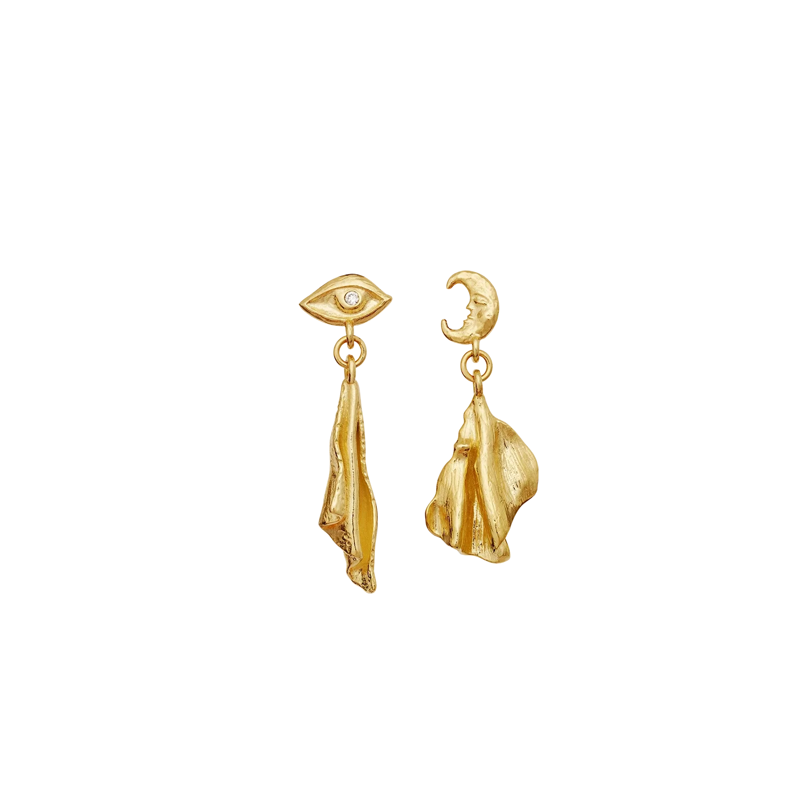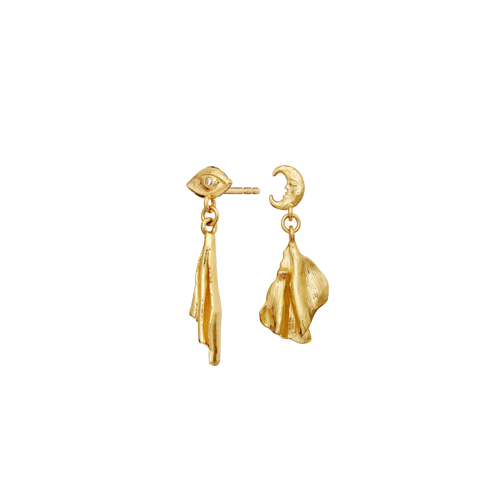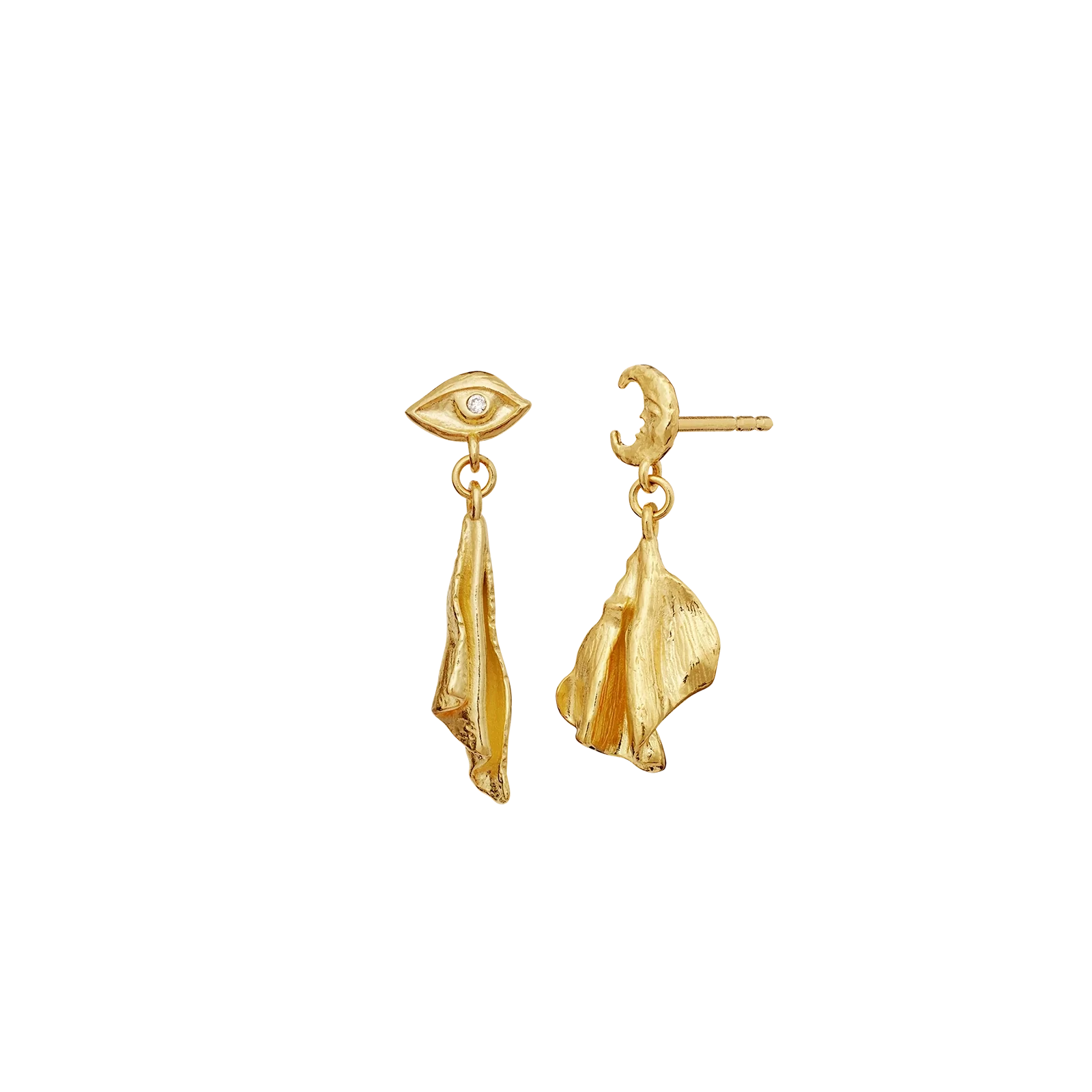 Maanestens gullbelagte smykker er laget av resirkulert sterlingsølv (925) belagt med 18 karat gull, ofte kombinert med edelstener. Ta godt vare på dem slik at de beholder glansen så lenge som mulig.