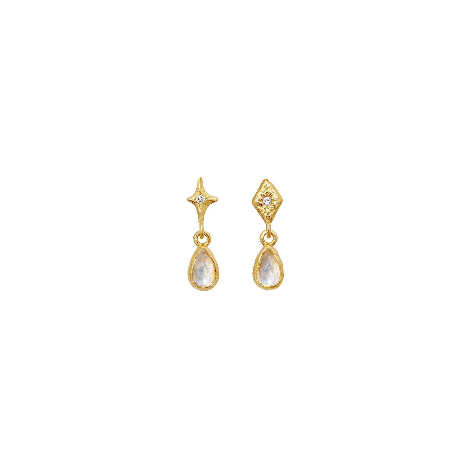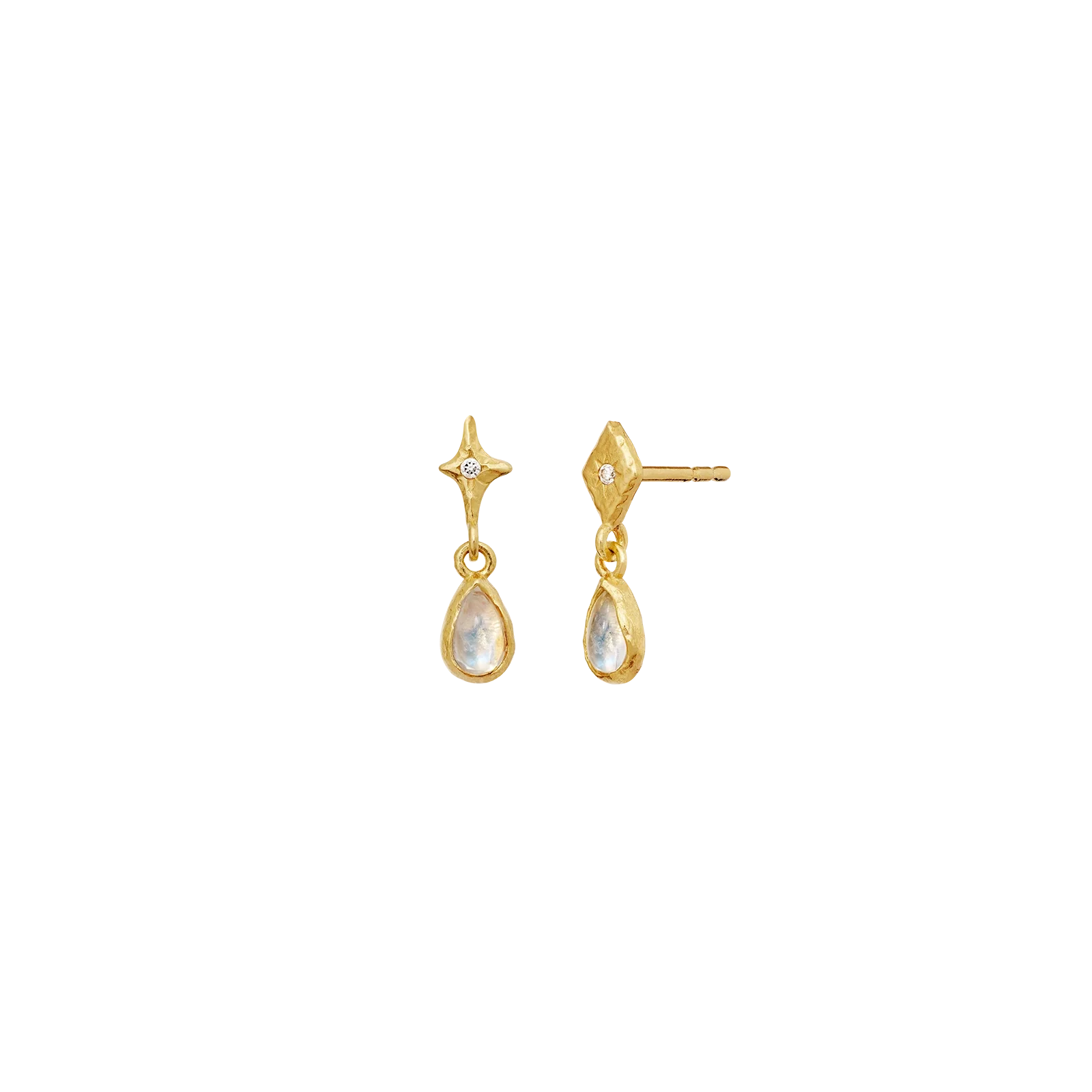 Resirkulert sterlingsølv (925) belagt med 18K gull, regnbuemånestein, hvit zirkonia