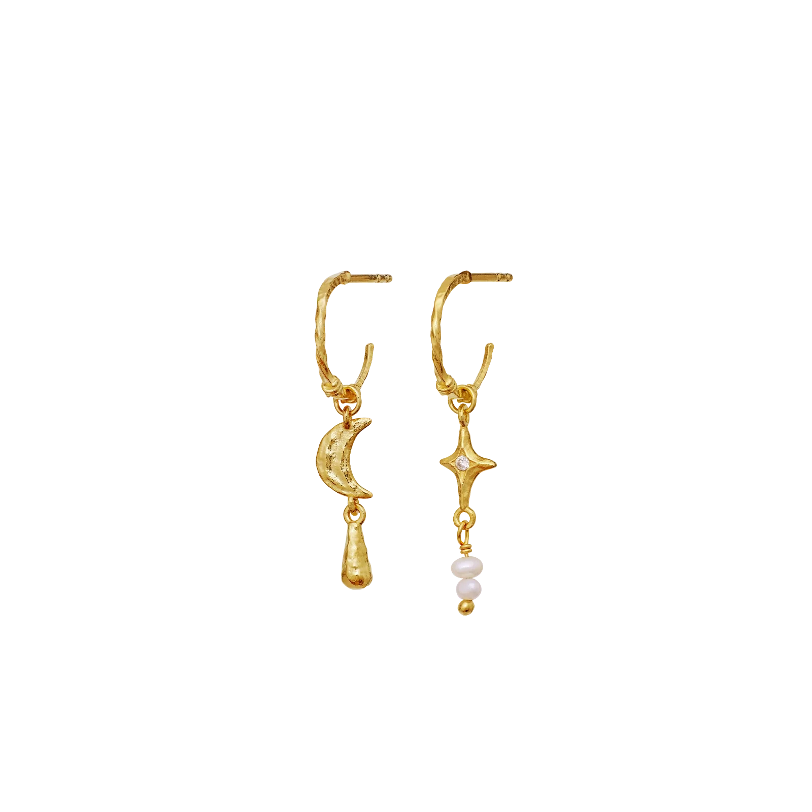 Opplev magien med våre Tamina-øreringer, som fortryller deg med delikate anheng av måner, zirkoner og ferskvannsperler.