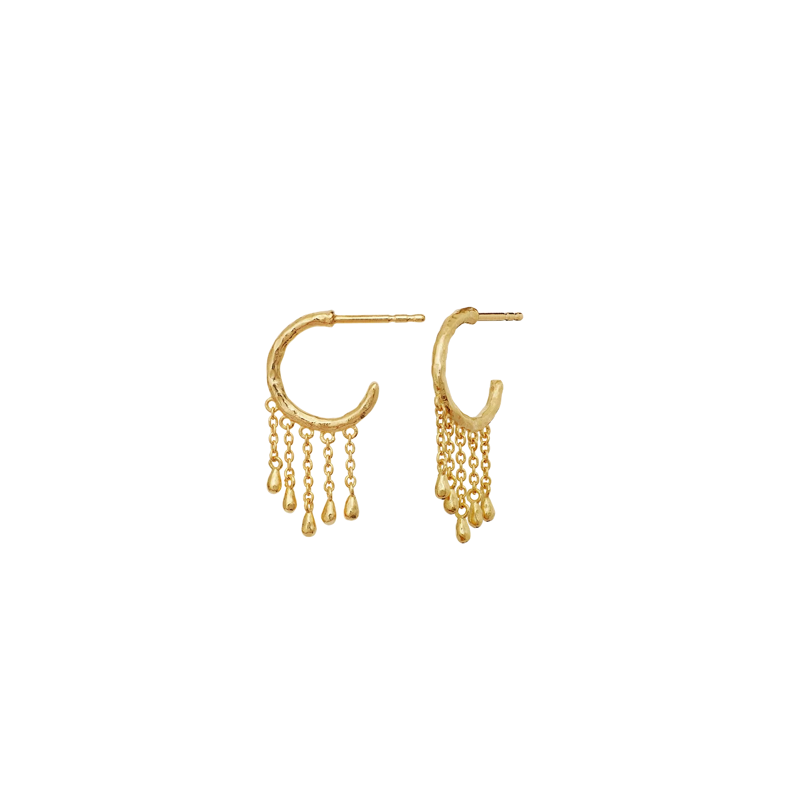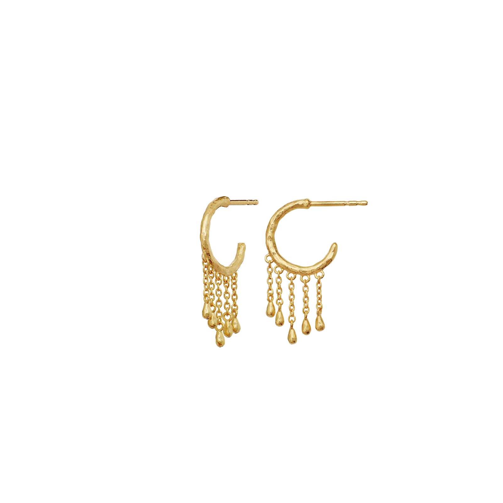 Våre Wendy-øreringer er som en drøm. Med delikate kjeder som faller som flytende gull, er de en hyllest til utenomjordisk eleganse.