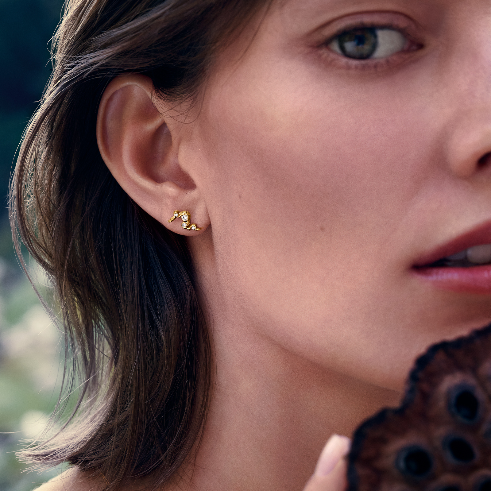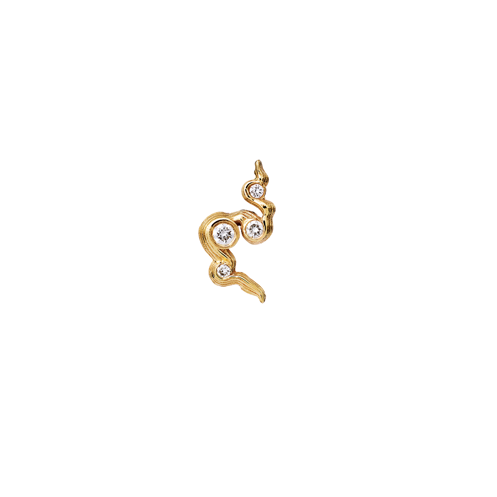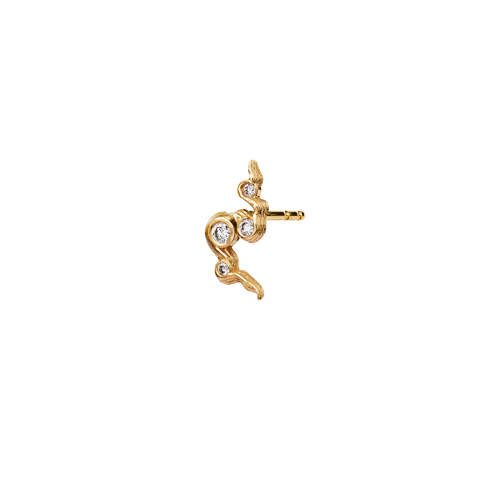 Daphne er en synergi av de vakreste diamantene i et organisk forløp. Materiale: 4 diamanter med en total karat på 0,07. 18 karat gult gull. Kvaliteten på diamantene er SI1 F-G. Øredobben selges enkeltvis.