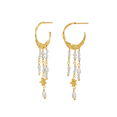 Månen og stjernene er nattens herskere. La Gabrielle-øreringene bringe deres nattlige kraft inn i dagslyset. Størrelse: Stjerne: Lengde 26 mm, bredde 12 mm Måne: Lengde 25 mm, bredde 9 mm