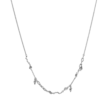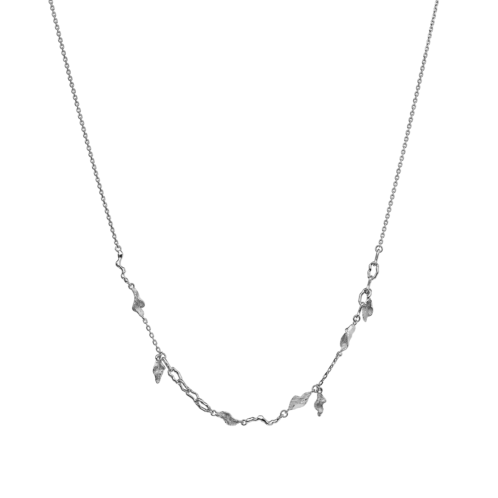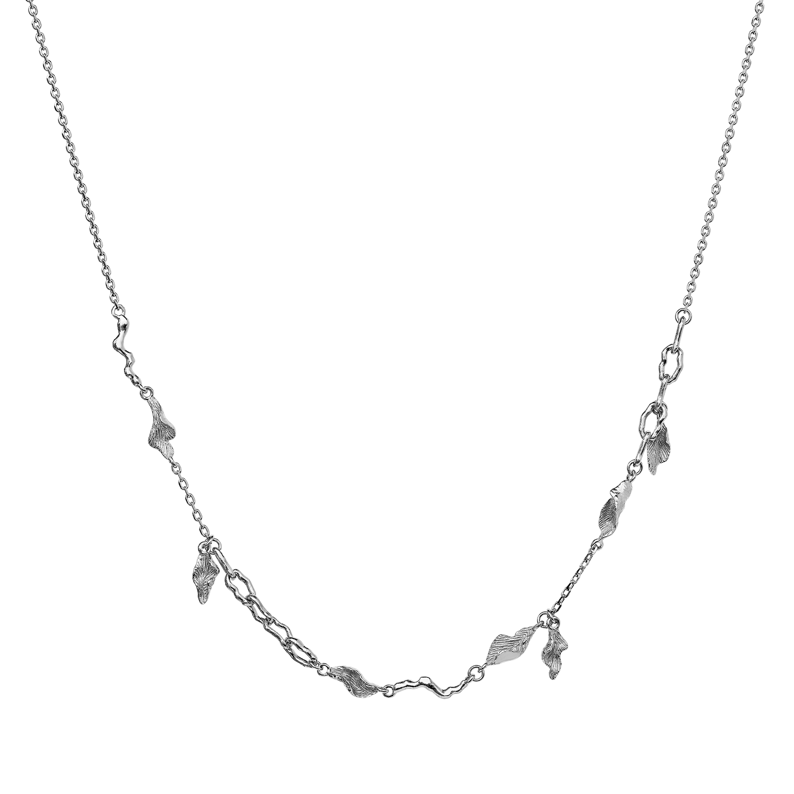 Et unikt og assymetrisk halskjede med intrikate detaljer. De foldede bladene og lenkene skaper et vakkert uttrykk i dette spesielle halskjedet.