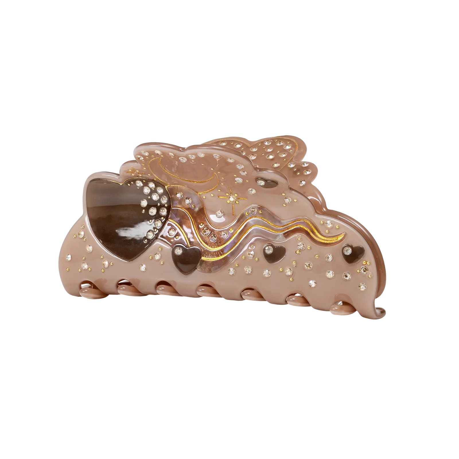 Vår Love Comet Hårklemme kaster en glød av lidenskap og kosmisk sjarm på dagen din.