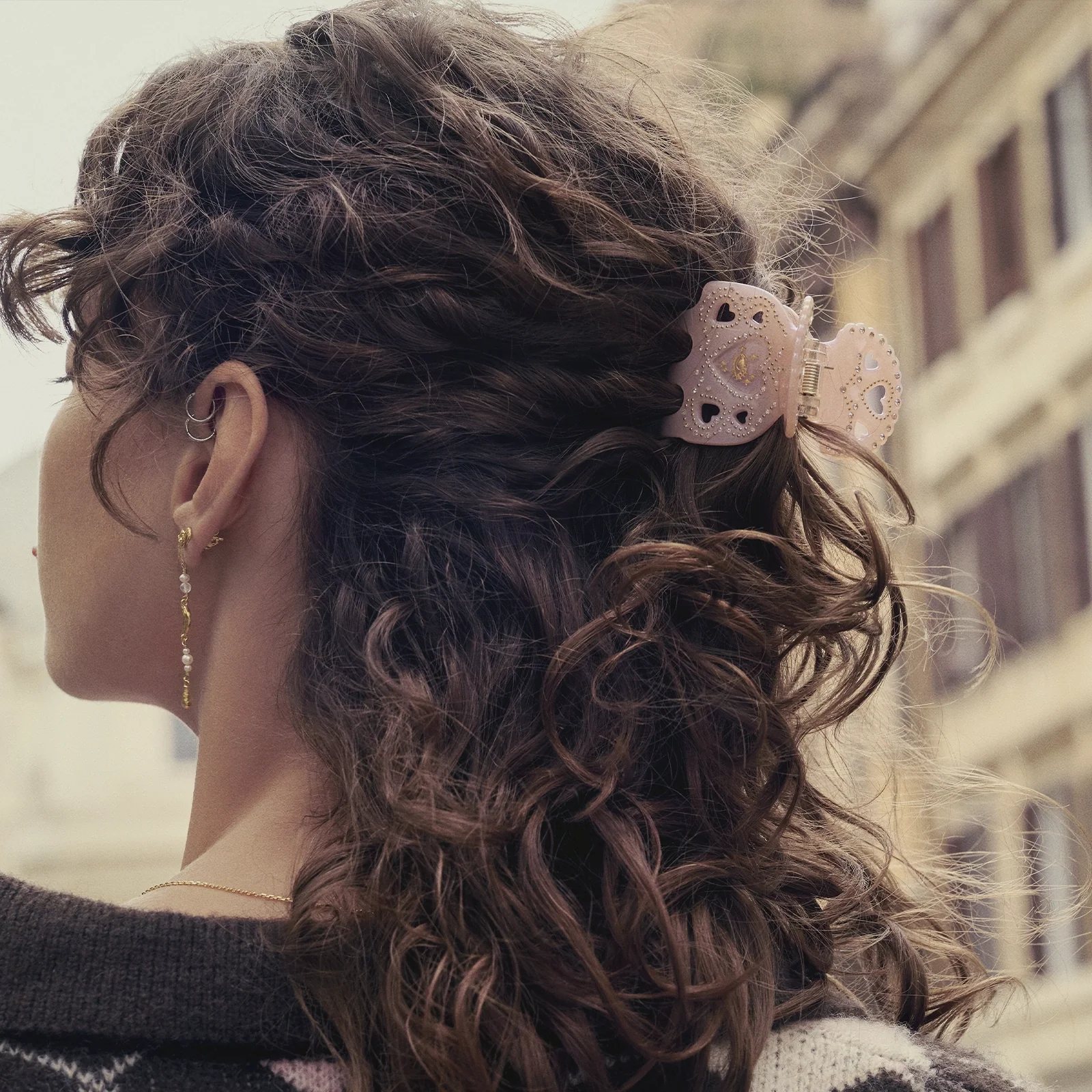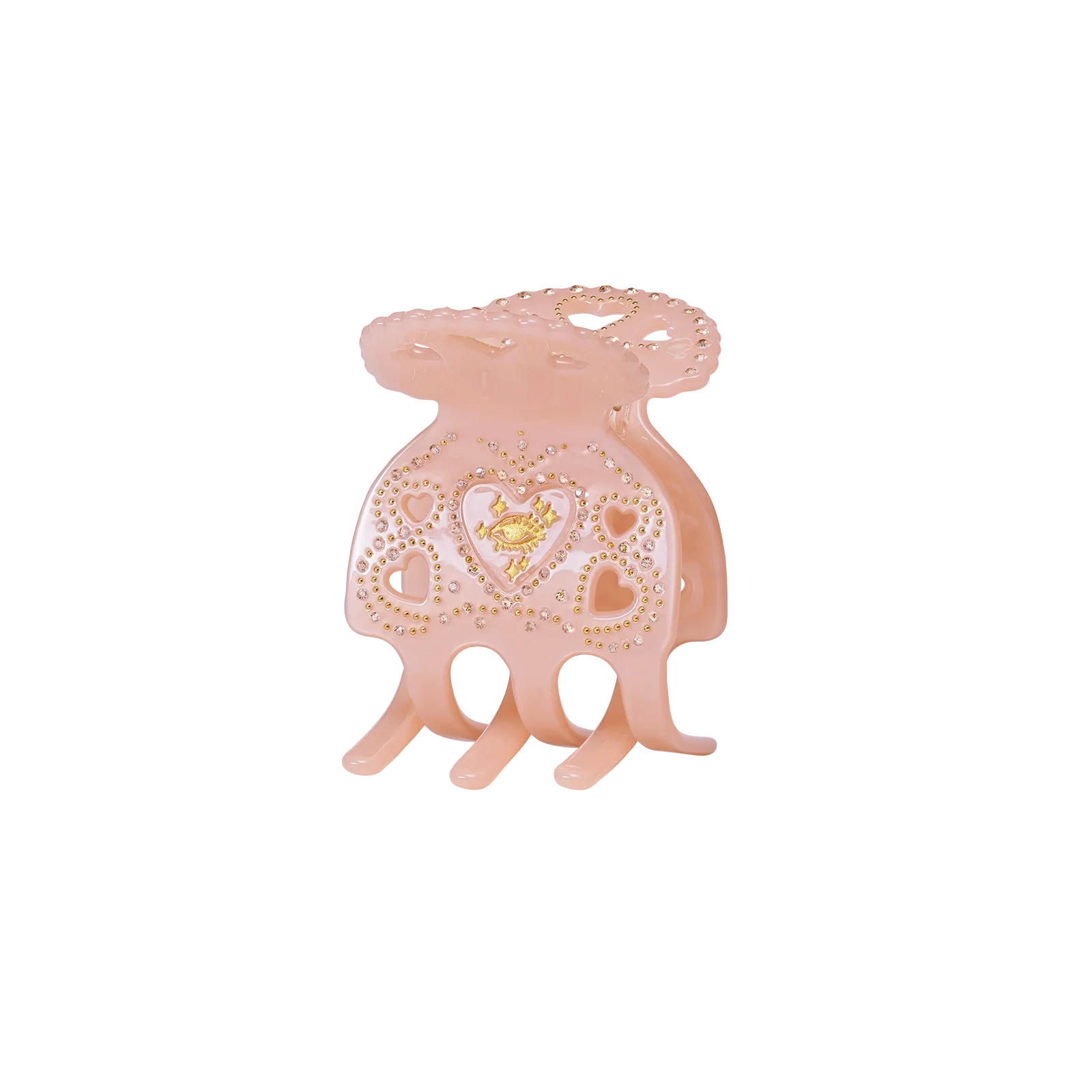 Vår Pantalone Hårklemme er en delikat omfavnelse av glitrende rhinestener og kjærlige hjerter.