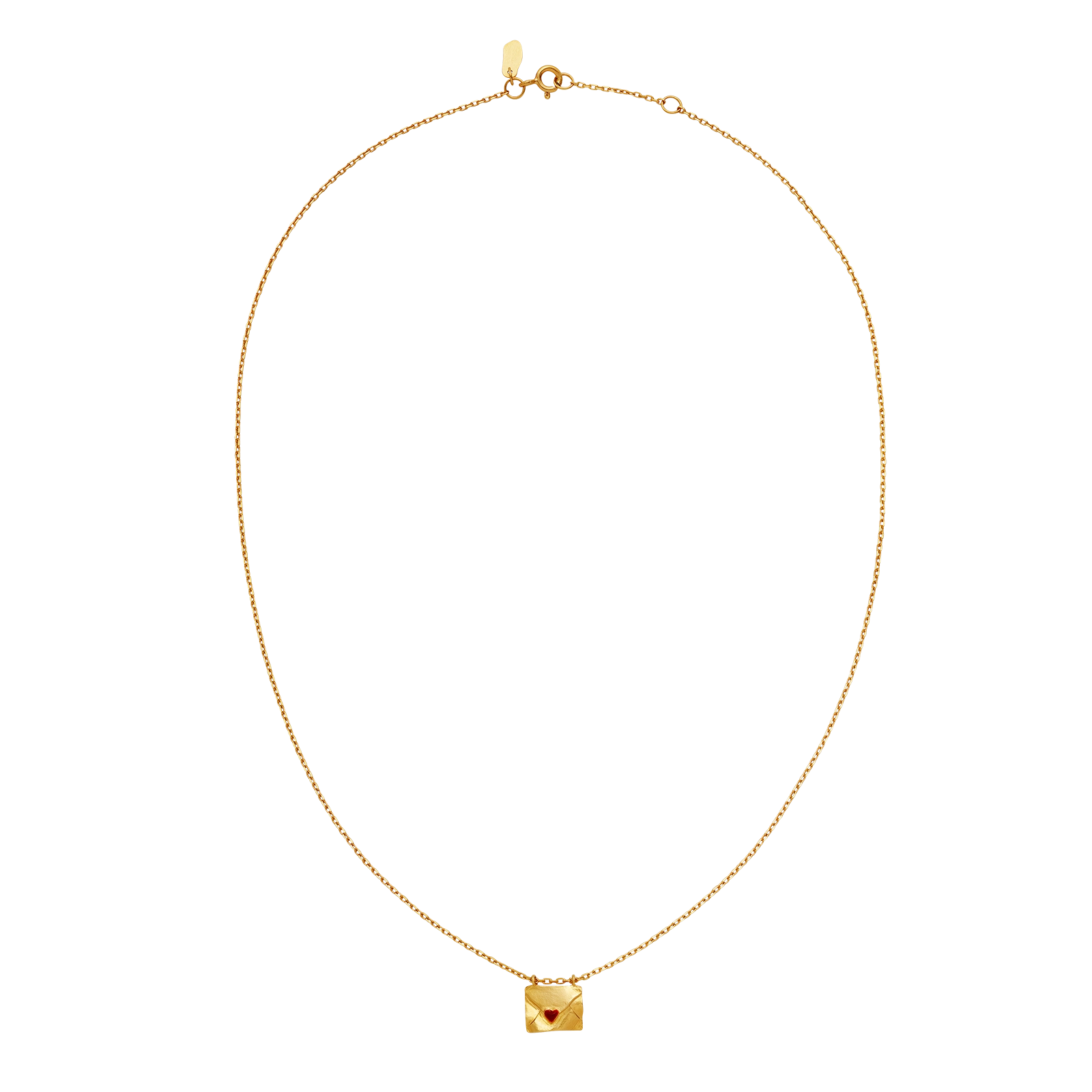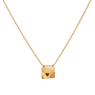 Kjærligheten kjenner ingen grenser når den blir satt ord på. Vårt With Love-halskjede inneholder løftet om alle dine kjærlige ord, trygt oppbevart i en hjerteforseglet konvolutt, klar til å sendes til en du er glad i. Materialer: Resirkulert sterlingsølv (925) belagt med 18K gull, emalje Størrelse: Lengde 42 cm: Lengde 42 cm + 3 cm forlenget kjede