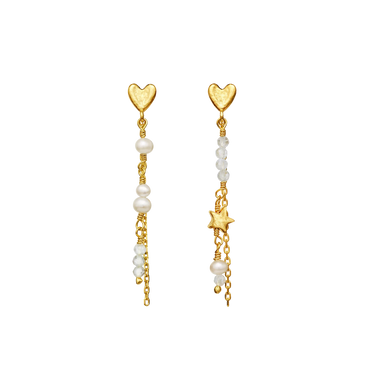 Som stjerneskudd drevet av ren kjærlighet varsler Silma-øreringene våre fantastiske nye begynnelser med sine elegante haler av ferskvannsperler og månesteiner. Størrelse: Lengde 43 mm, bredde 5 mm