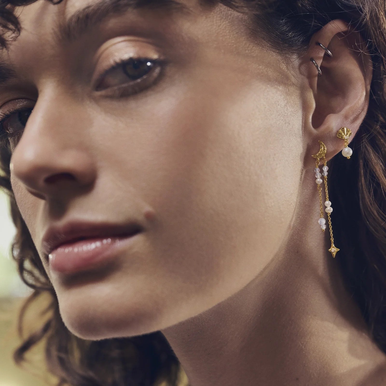 Våre Sonata-øredobber utstråler skjønnhet like lett som en melodi flyter. Med vakre ferskvannsperler og fortryllende regnbuemånesteiner er de en perfekt harmoni av eleganse og klarhet.
