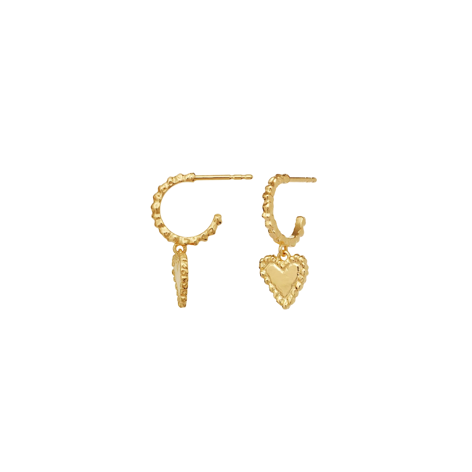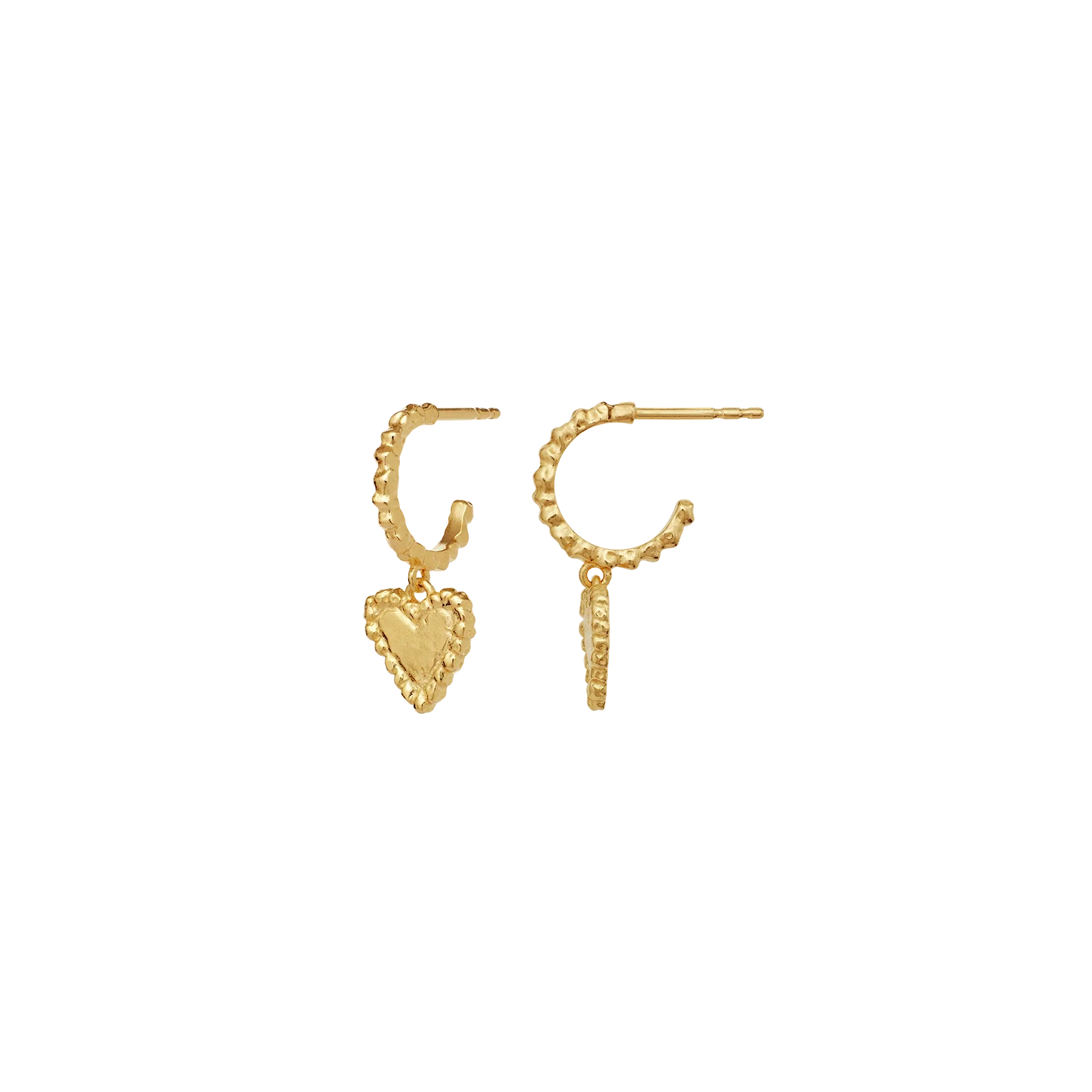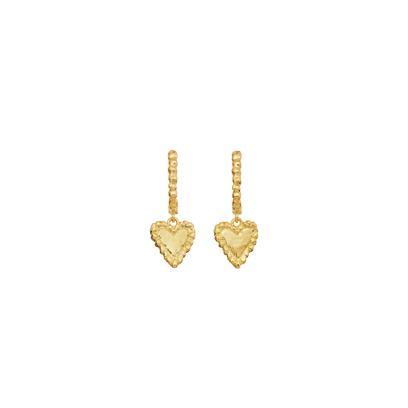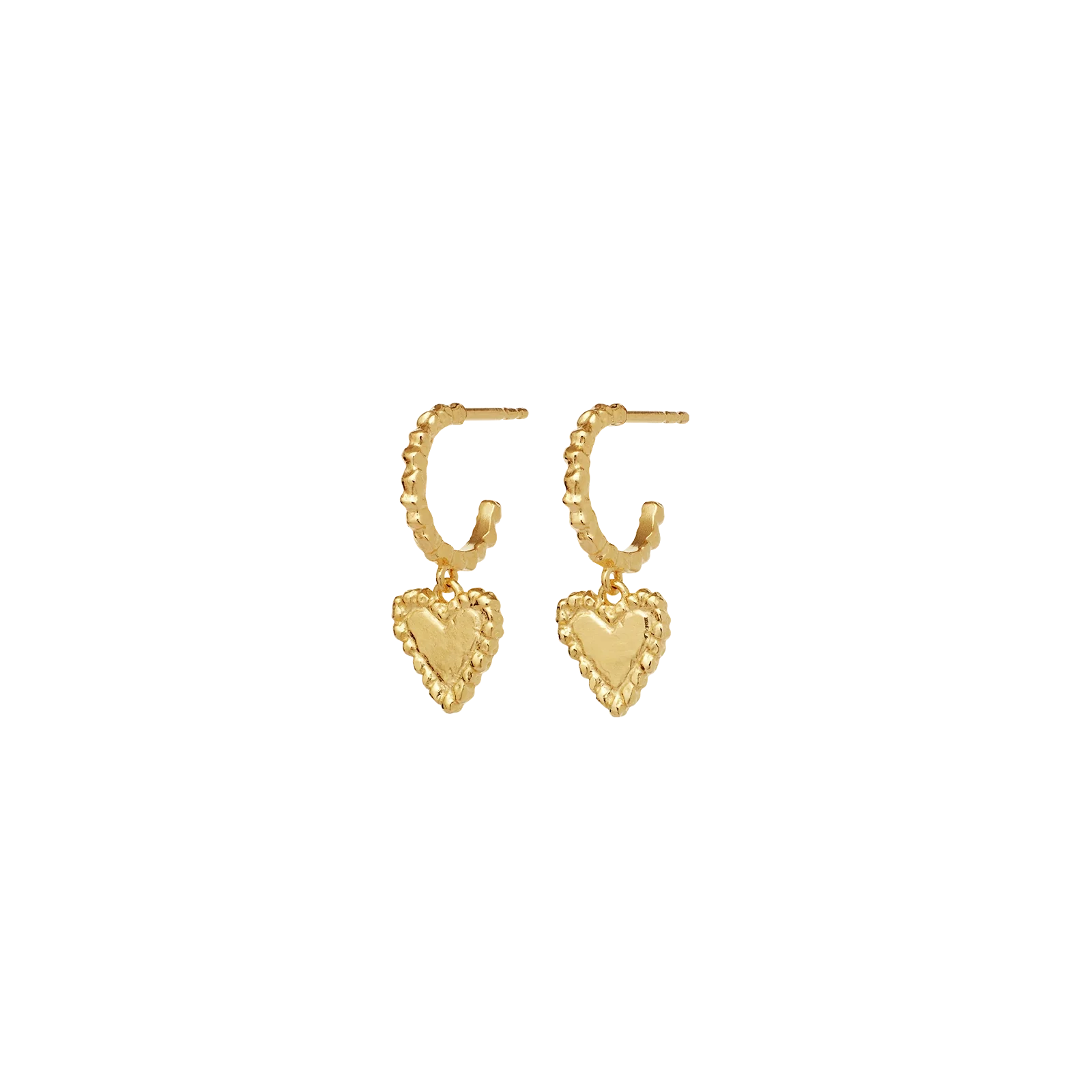 Omfavn kjærligheten med våre Rosalinde-øredobber, med omkransede hjerter som henger elegant under en gylden ring.