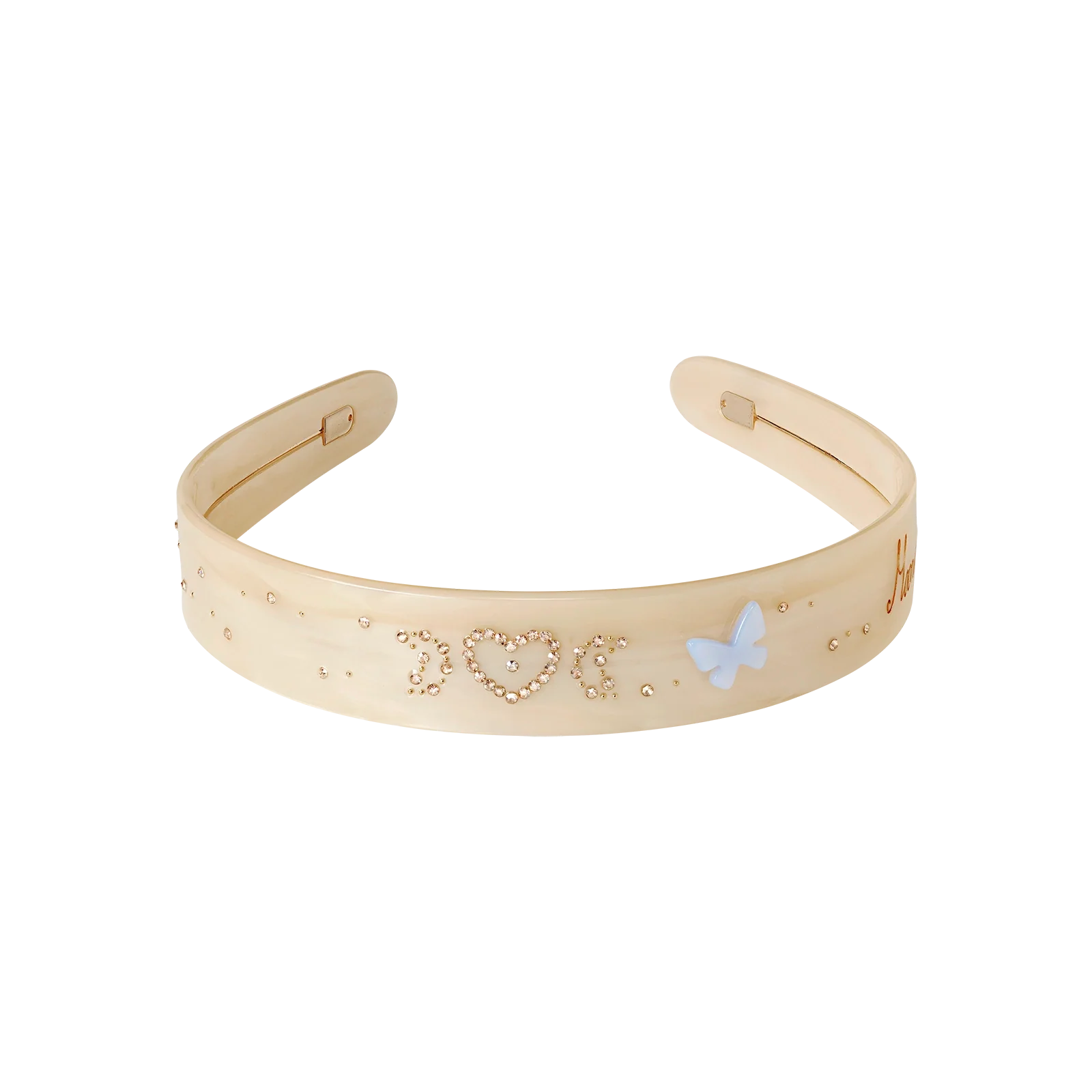 Med vår Shirley-hårspenne kler du deg opp for et rent sommereventyr. Pyntet med sjarmerende strass i formasjoner av hjerter og måner og en elegant sommerfugl, vil du skinne som sommersolen.