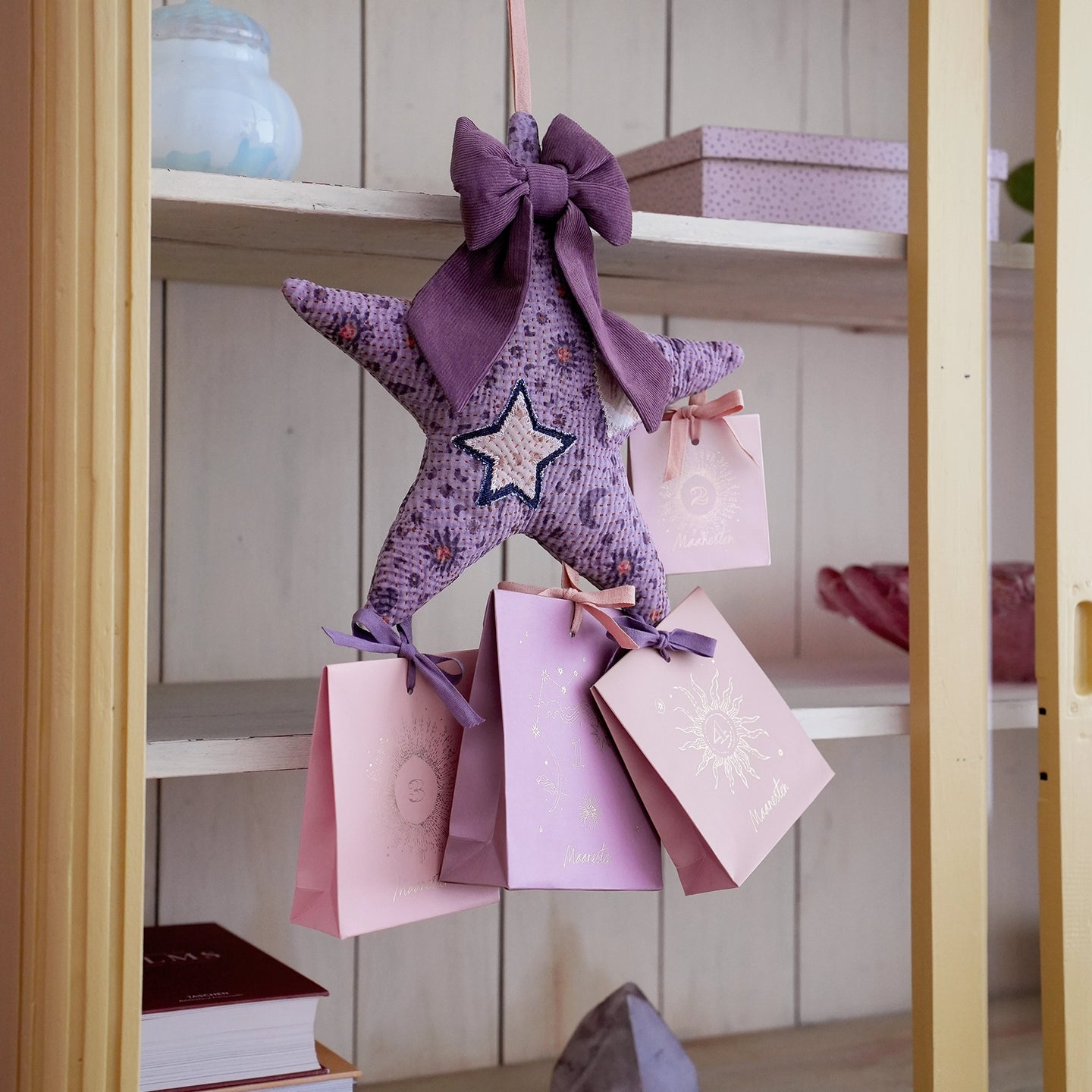 Gjør ventetiden til jul litt søtere med et snev av Maanesten-magi med årets adventskalender. Vår 2025-utgave er en myk, håndlaget stjerne i lilla kantha, et materiale laget av resirkulerte sarier som er sydd sammen og deretter trykt med vårt eget design. For å legge til litt ekstra magi har vi dekorert den med lapper og en fløyelsbue, som bidrar til å gjøre hver dag i desember mer festlig.