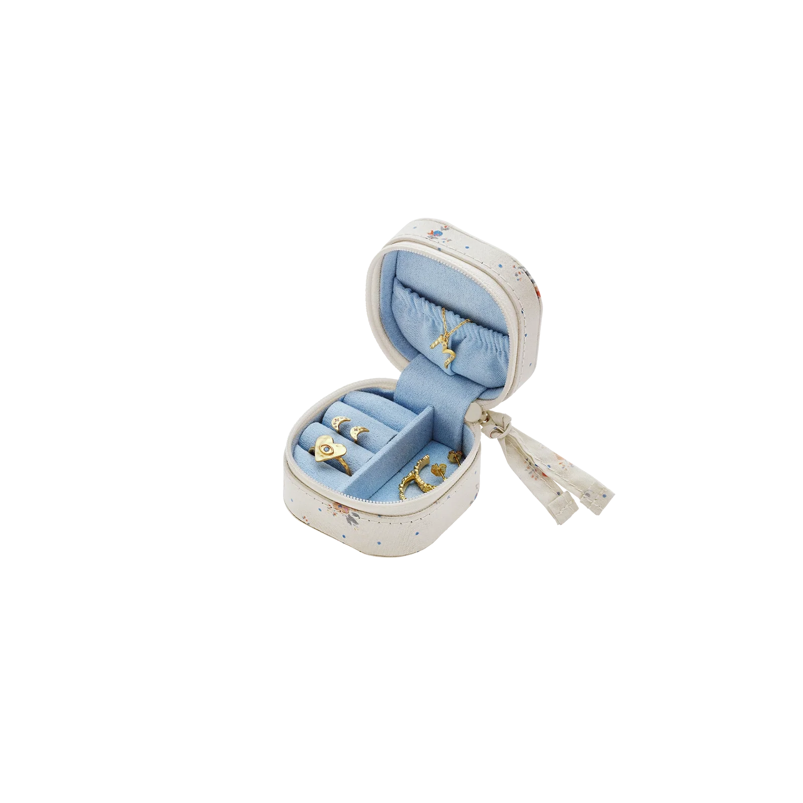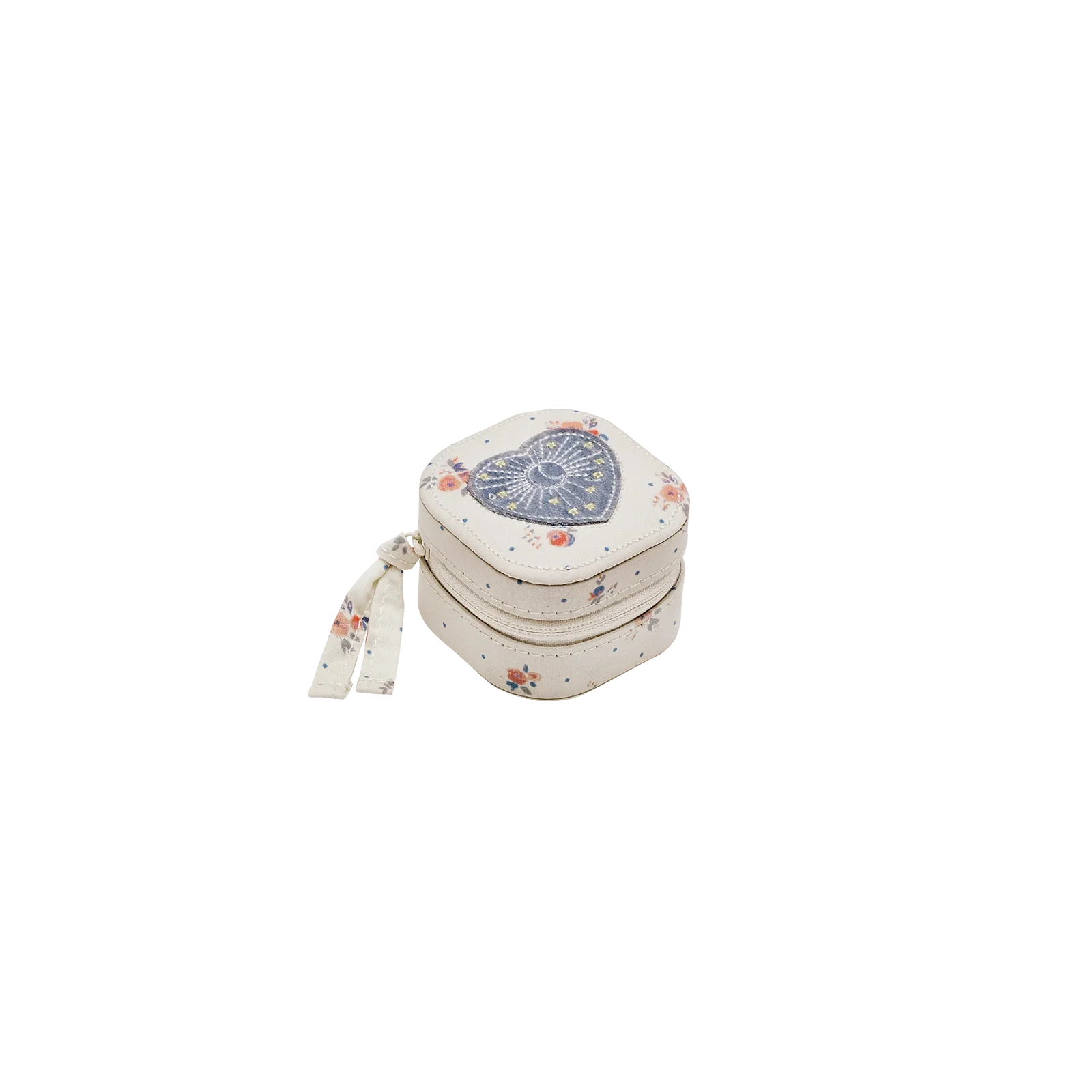 Vår Alice smykkeskrin er søt og kompakt, designet for å holde dine favorittskatter innen rekkevidde. Med et sjarmerende hjerte på lokket er denne lille esken perfekt for dine minste eiendeler – både hjemme og på farten.