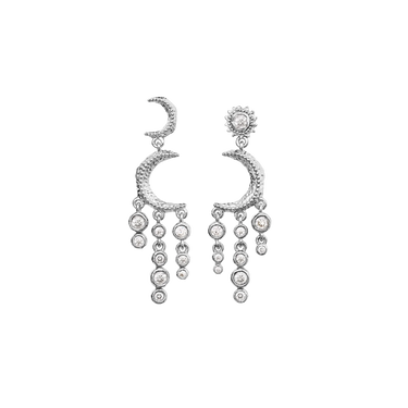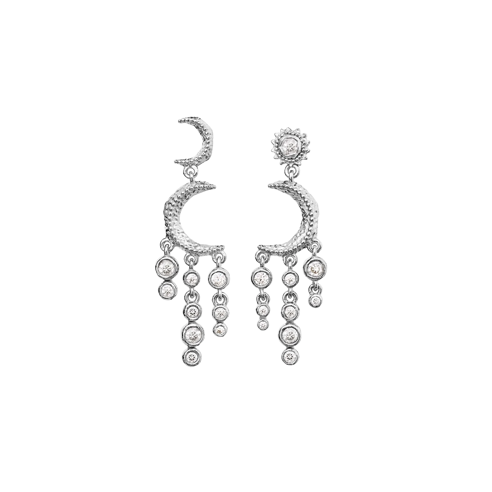 Astrea Twinkle Earrings forener delikate halvmåner med små glitrende steiner som fanger lyset som om de var stjerner på nattehimmelen. Øredobbene er laget av resirkulert sterlingsølv og fås også belagt med 18 karat gull. De er prydet med glitrende hvite zirkoner som tilfører et magisk uttrykk til ethvert look.