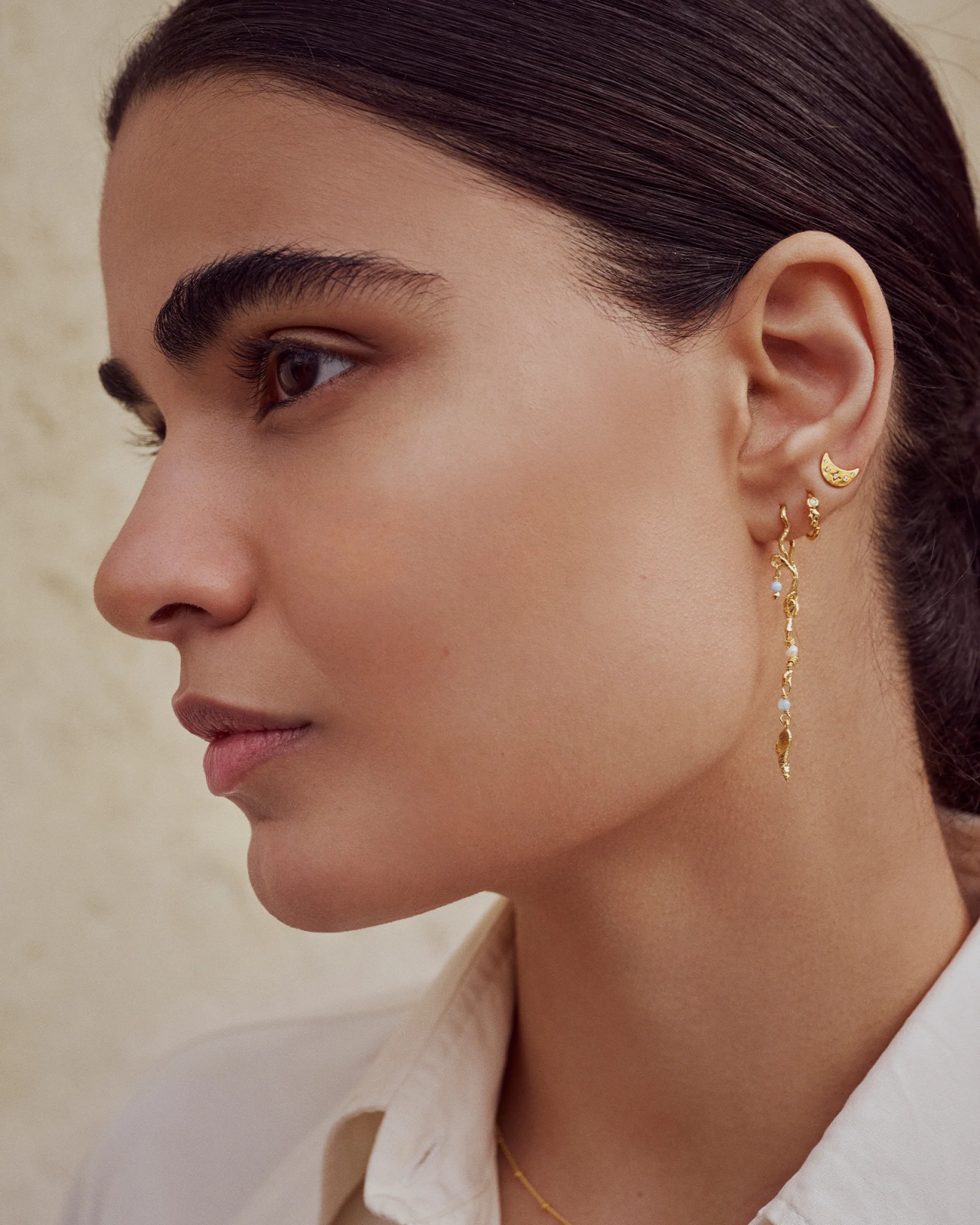 Maanestens gullbelagte smykker er laget av resirkulert sterlingsølv (925) belagt med 18 karat gull, ofte kombinert med edelstener. Ta godt vare på dem slik at de beholder glansen så lenge som mulig.