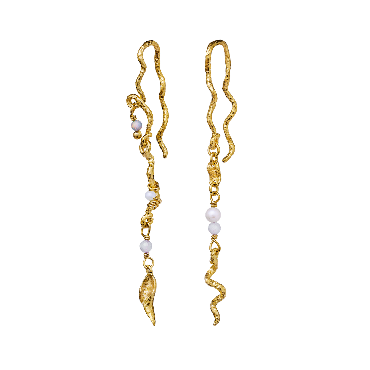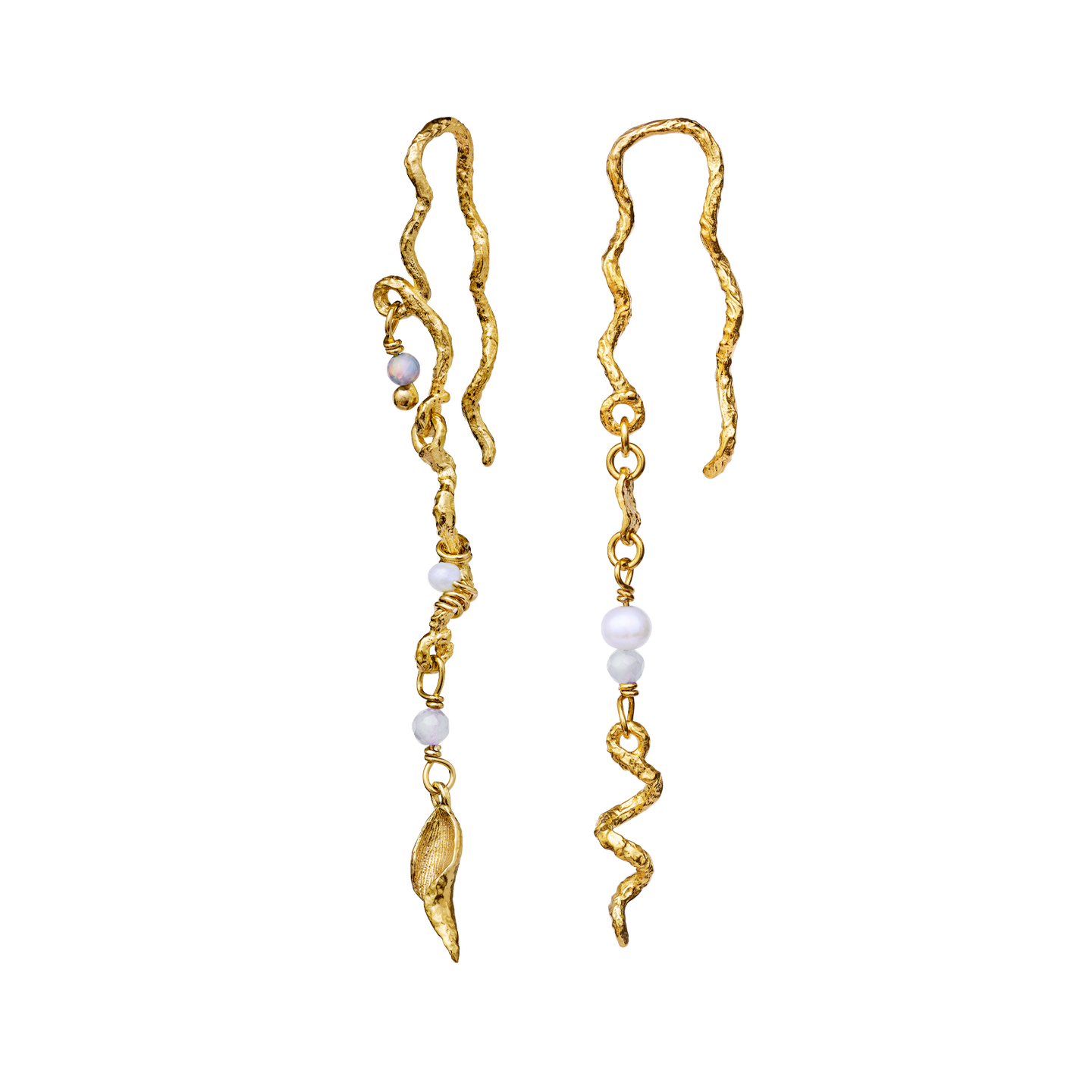 Elisa-øredobbene er organiske fra rot til tupp. De faller fra øret som lett krøllete, spinkle spirer, hvorpå små funklende skatter i form av eventyrlige små blå opaler, aquamariner og fine ferskvannsperler titter frem og danner et magisk, forlokkende fargespill.