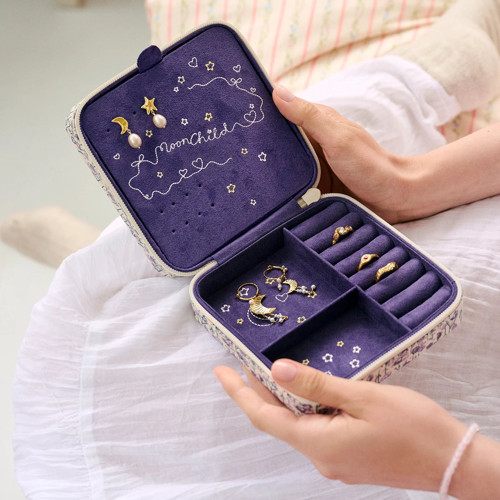 Vår Margaret smykkeskrin er designet for å bringe glede til hjemmet ditt og beskytte dine mest dyrebare smykker. Med sine oversiktlige rom er skrinet et tidløst utstillingsvindu for smykkene du elsker å se på – og bruke – hver dag.