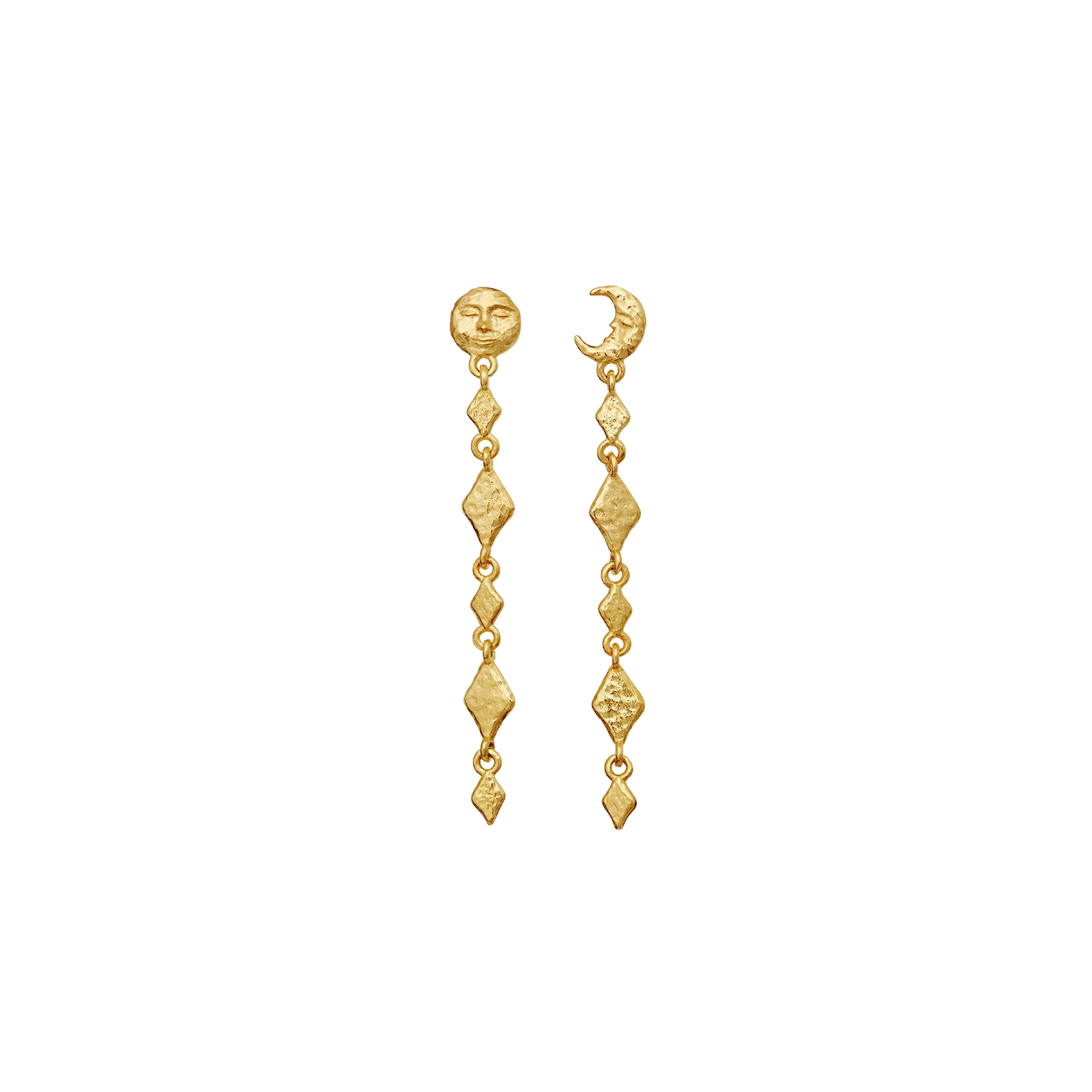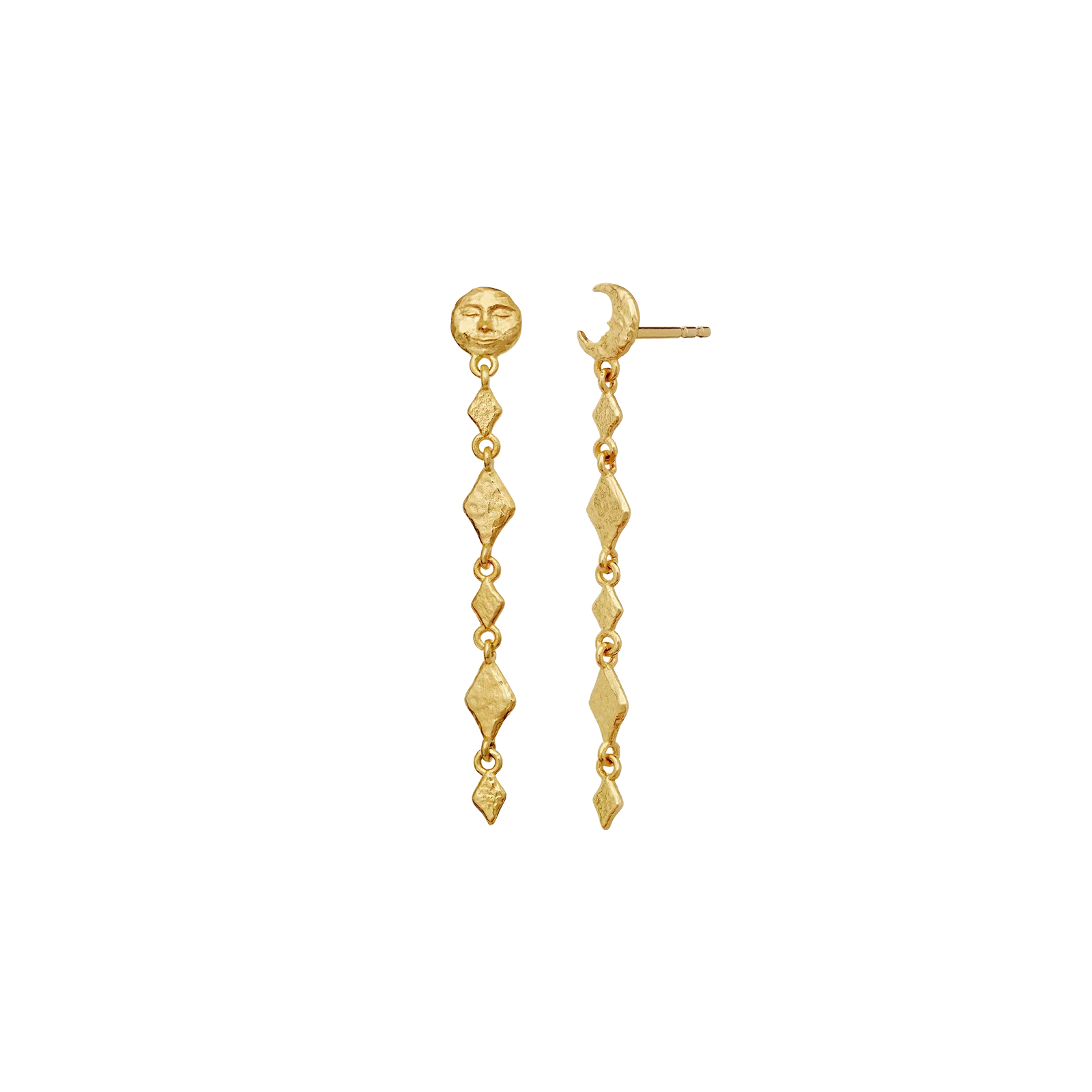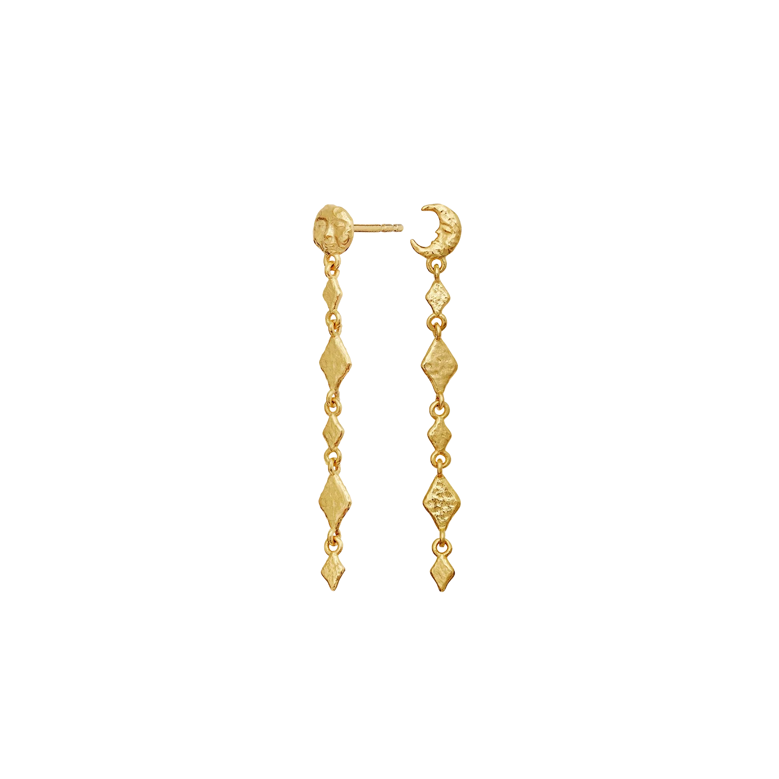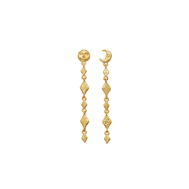 Våre Minola-øreringer henter inspirasjon fra månens skiftende faser. Med de elegante kjedene av små harlekinformer symboliserer de den stadig skiftende naturen til kreativitet.