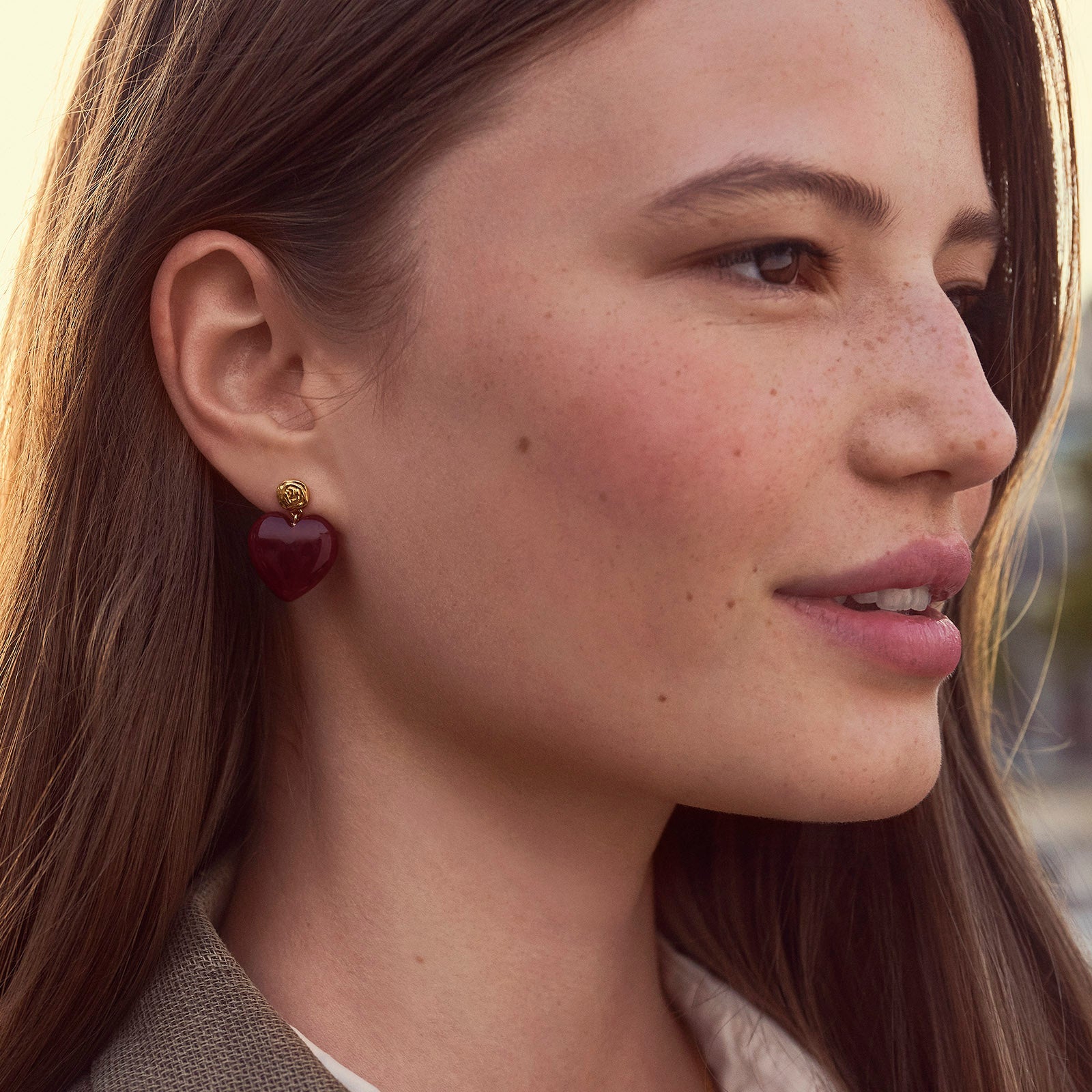 Hvis du bare skal velge ett smykke å investere i denne sesongen, bør du velge et som gjør inntrykk. Rosy Heart-øreringene gir et sjarmerende, romantisk preg til ethvert antrekk. De skulpturelle hjertesilhuettene og de myke, avrundede kurvene gjør dem til perfekte statement-øreringer som er både moderne og tidløse på samme tid.