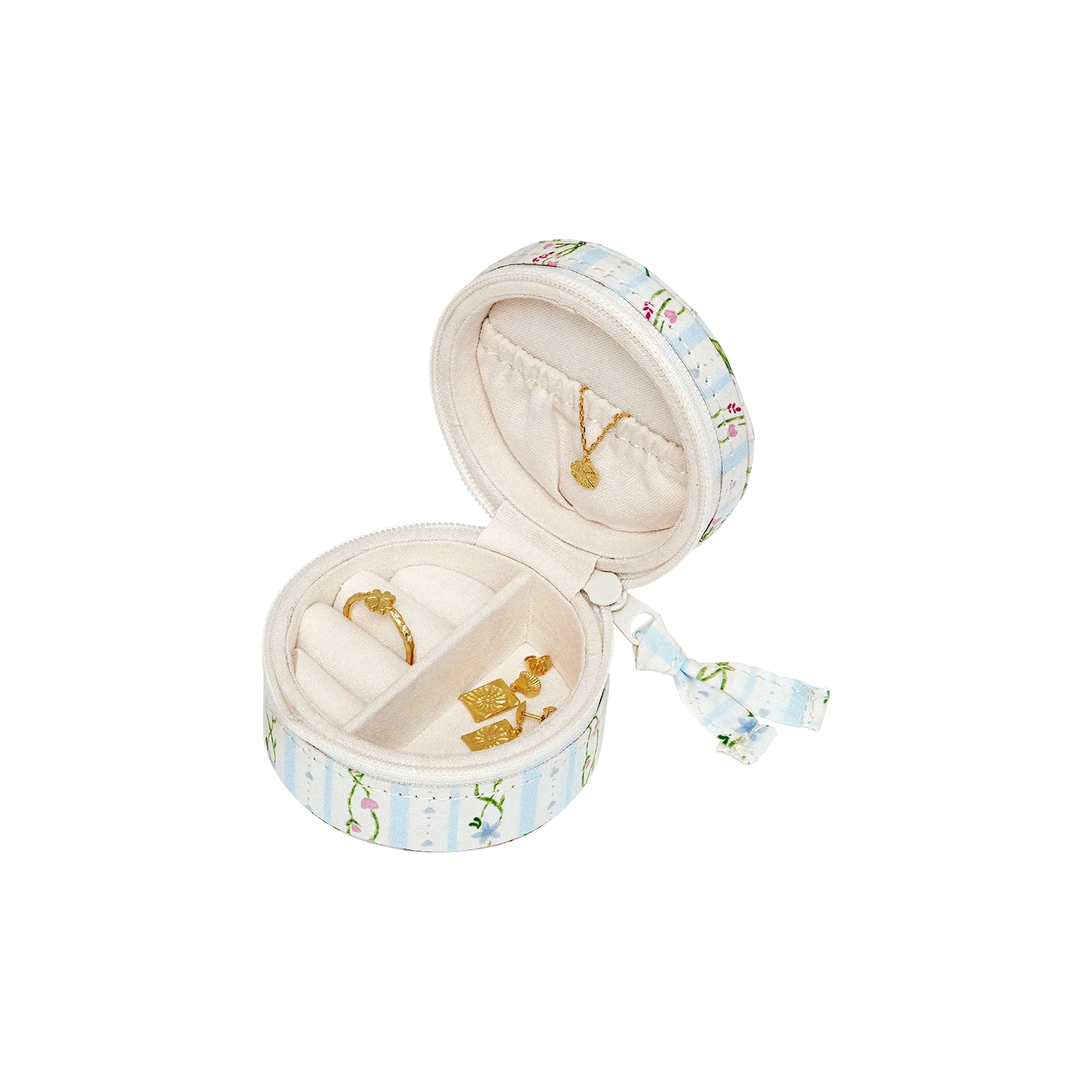 Vårt lille, runde smykkeskrin er ren sommernostalgi. Kompakt og lett å bære, men romslig nok til å romme dine verdifulle smykker – og de fantastiske minnene de bærer med seg.