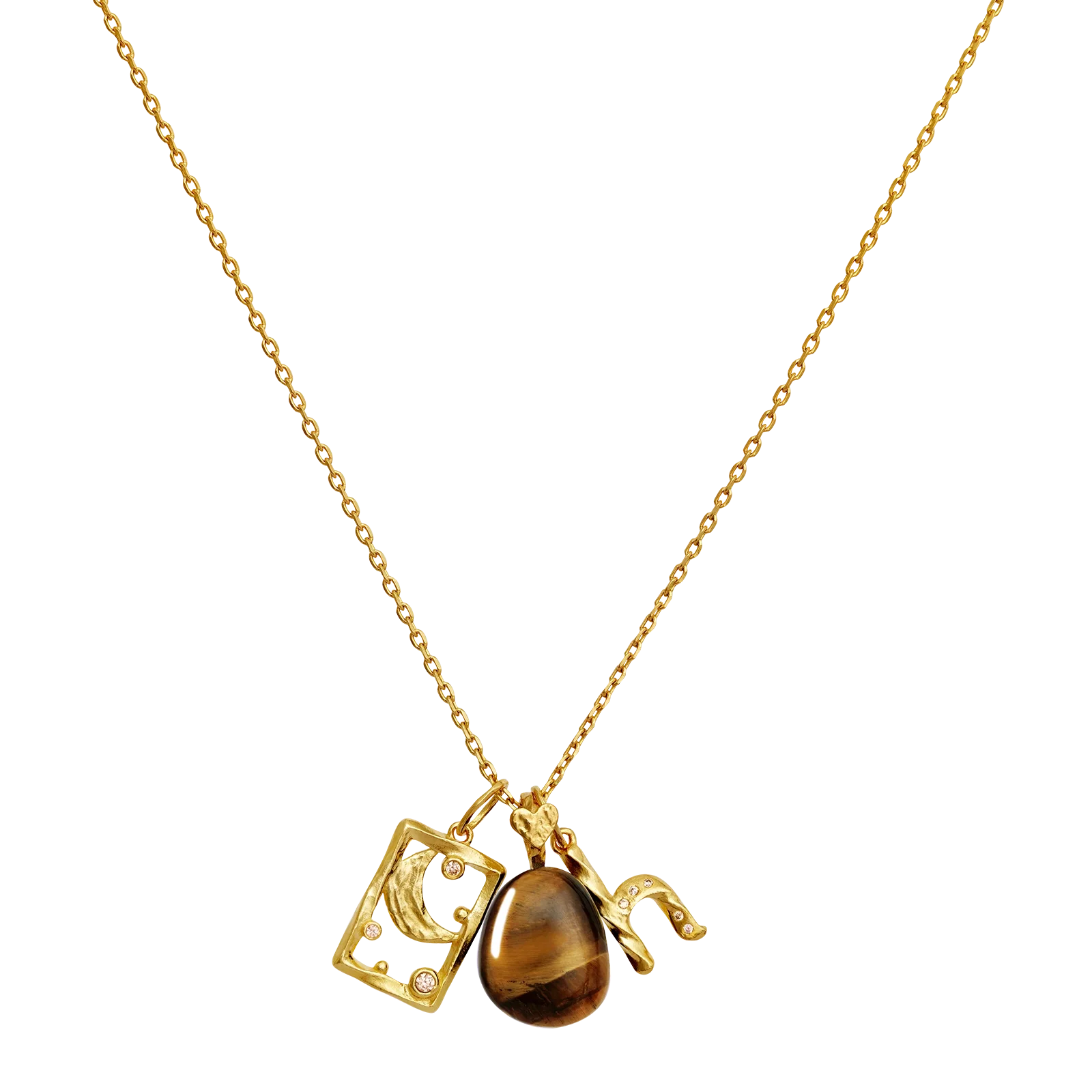 Tiger Eye Earth Spirit-amuletten er fylt med gyldne fargetoner og symboliserer rolig styrke og balanse. Et speil av jordens rolige puls under føttene dine.